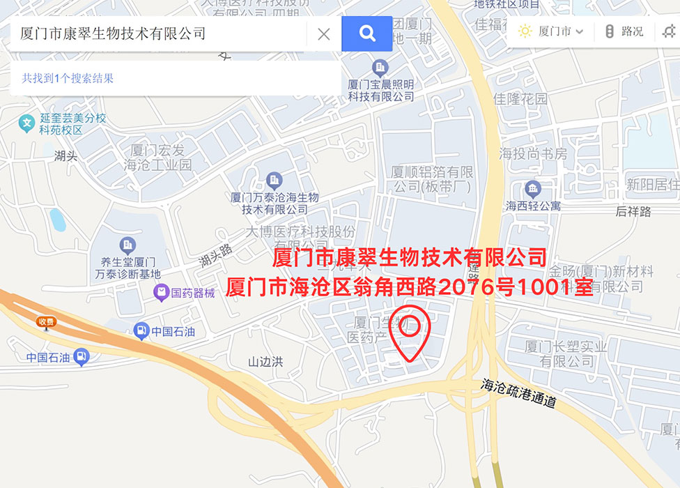 公司总部:厦门市康翠生物技术有限公司厦门市海沧区翁角西路2076号1001室